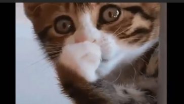 Рыжий котенок знакомится с грозным питбулем. Уморительная сценка!