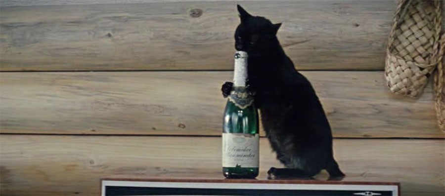 «Бутылка шампанского мгновенно перемещается на телевизор – к чёрному коту»