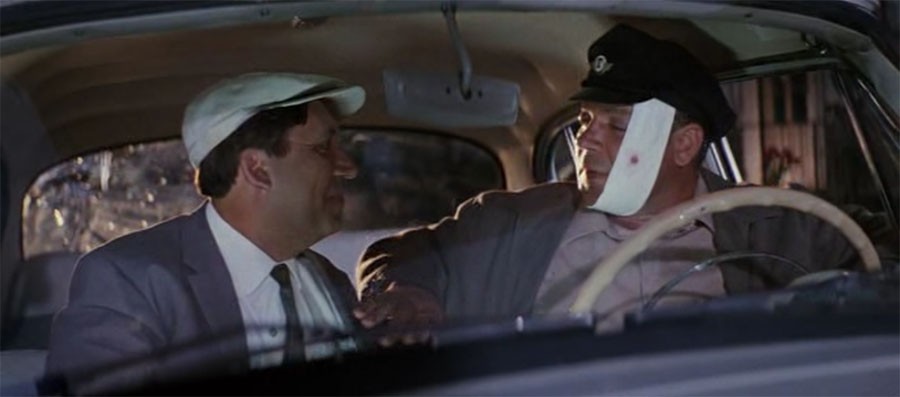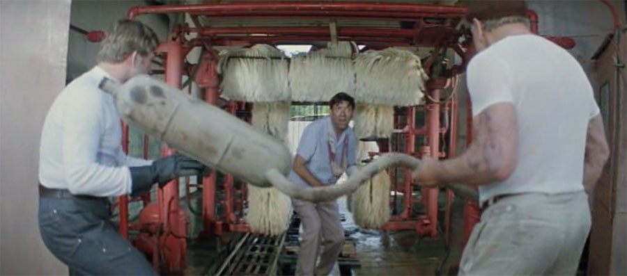 А вот, что называют самым грубым ляпом фильма: «Смена плана… и уже окружённый бандитами в смотровой яме Горбунков оказывается у щёток автомойки»