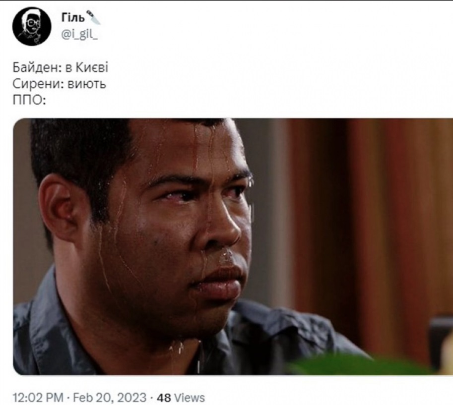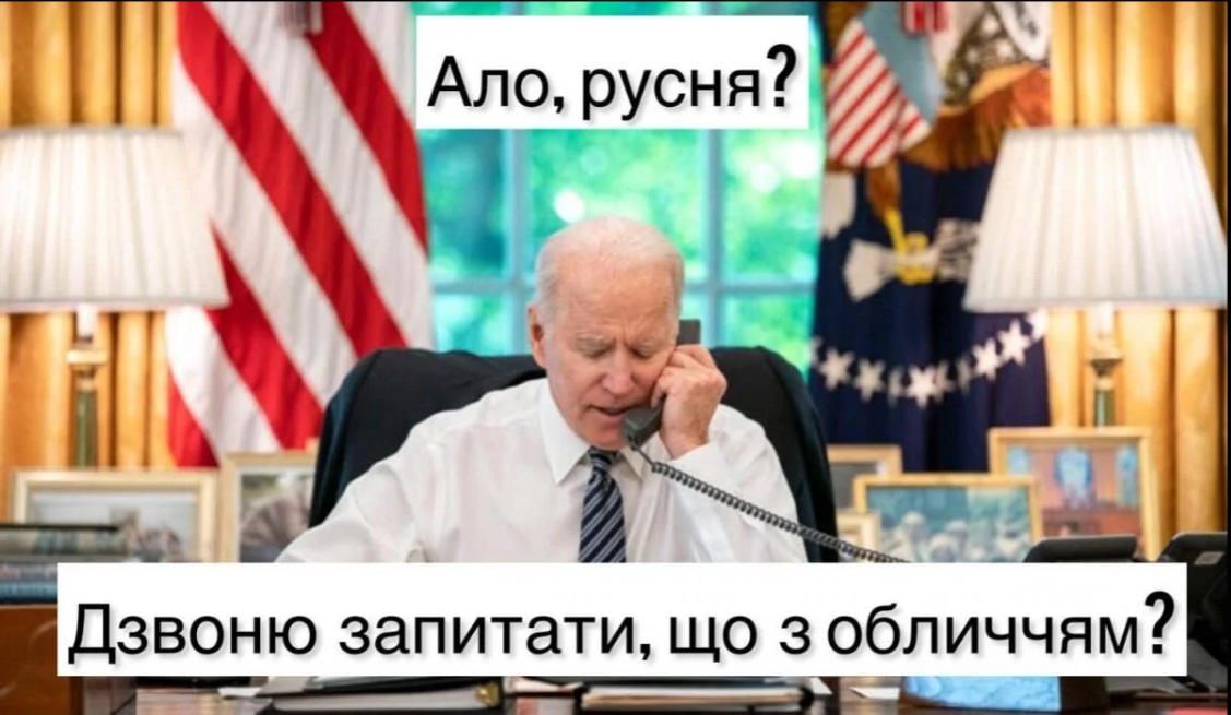 Украинцы заметно обрадовались приезду американского гостя и тут же взялись делать забавные мемы. Кто-то фотошопит президента Штатов на фоне АТБ, кто-то — в популярных киевских заведениях. Особо вирусным стал мем, где Байден якобы интересуется по телефону у российских агрессоров, что у них с лицом от таких новостей.