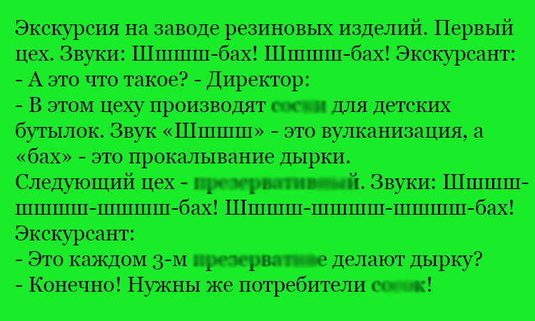 Юмор бывает очень разнообразным — есть забавные шуточки, милые смешные картинки, иронические истории, саркастичные открытки, порой мы читаем классические анекдоты про известных персонажей, вызывающие улыбочку. Но иногда попадаются анекдоты, которые в меру приправленные перчинкой, но при этом вызывают громкий смех. И именно из такого анекдота — про разные резиновые изделия и их предназначение, мы начнет новенькую юмористическую подборочку.