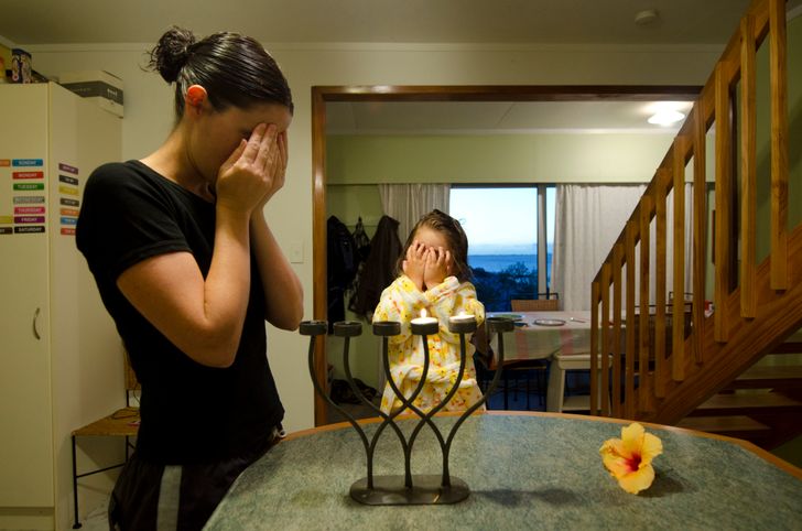 Чтобы не нарушать законов шаббата, большинство верующих евреев остаются в квартире и проводят этот день со своей семьей.