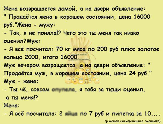 Давайте на минуточку отвлечёмся от бесконечного потока своих будничных дел и представим, что завтра – вовсе не понедельник, а просто ещё один прекрасный день. Тогда и вечер сразу становится ярче, и настроение – бодрее. Ведь если знать, что впереди ждёт что-то хорошее, никакие дни недели не страшны. Так давайте же будем качественно менять своё отношение к понедельникам! А мы вам в этом поможем с помощью всего лишь нескольких, зато каких, анекдотов.