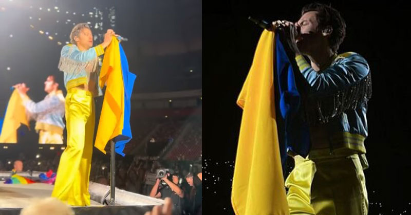 На днях популярный британский певец Гарри Стайлс на своем концерте в Варшаве вновь поднял украинский флаг. Ролик с этим моментом опубликовано на странице украинского проекта culture_ukraine в Instagram. В кадре видно, как артист сначала прошелся по сцене с нашим флагом в руках, а потом закрепил его на микрофонной стойке, где продолжил своё выступление.