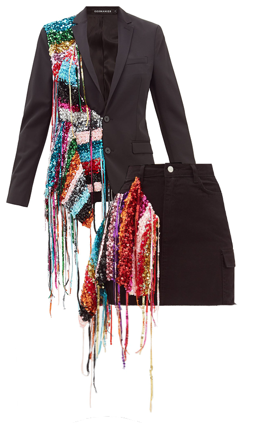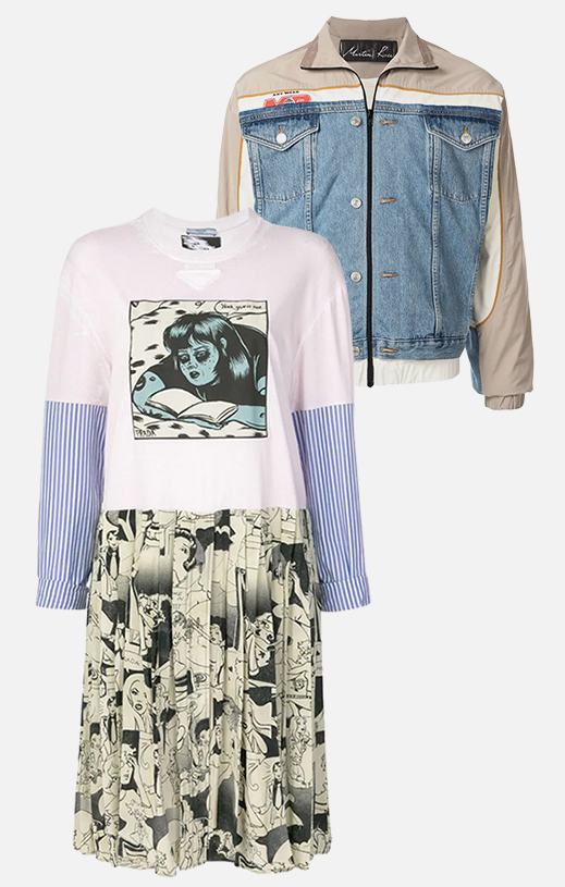 Сочетание разных по фактуре и цвету материалов бренды практикуют из сезона в сезон. Приём можно назвать современным пэчворком, ведь техника та же — сшивать вместе лоскуты ткани, только более разнообразных форм, размеров и нередко в хаотичном порядке. Смотрится это всегда свежо, а кроме того, создаёт эффект многослойности, которую дизайнеры любят не меньше. Примеры есть в коллекциях Ports 1961, Toga, Rejina Pyo и Matty Bovan.