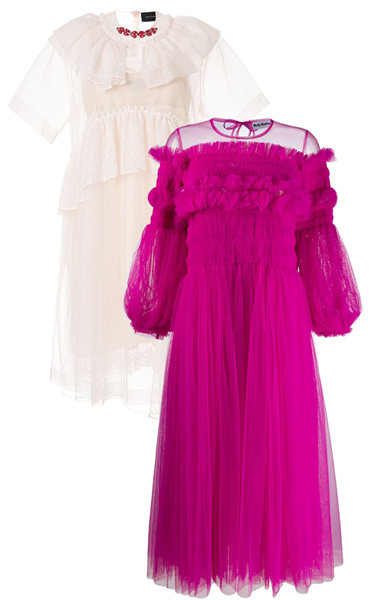 На Лондонской неделе моды было особенно много романтичных нарядов из органзы. Такие вещи кажутся праздничными, но адаптировать их для повседневной носки вполне реально. Например, блузки House of Holland и Preen by Thornton Bregazzi можно носить как на голое тело, так и поверх других вещей. В коллекциях Molly Goddard и Simone Rocha тоже нашлось место прозрачным материалам: сложные платья из органзы можно надевать как чехол на более плотные модели. А вот платье Emilia Wickstead стоит особняком и подойдёт для торжественных случаев.