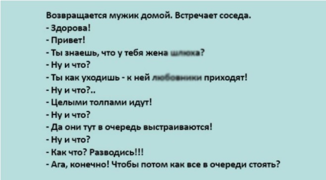 Быть всегда на позитиве, не зависимо от погоды и обстоятельств, задача практически непосильная. Ведь все мы люди, и у нас просто не может быть хорошее настроение всегда. Но и безнадёжно унывать нам тоже не следует. Ведь потом непросто выходить из хандры и депрессии. Поэтому давайте на всякий случай будем как можно чаще радовать себя приятными мелочами. Такими, как наши искромётные анекдоты, например. Ведь они обладают волшебным свойством поднимать настроение, пусть даже совсем чуть-чуть.