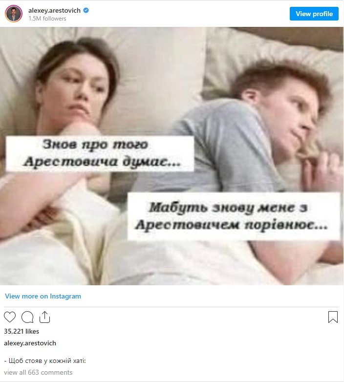 Напомним, на советника ОП в Инстаграм подписано свыше 1,5 млн фолловеров. Алексей Арестович — украинский политик, разведчик, блогер, политический и военный обозреватель, колумнист интернет-СМИ, актёр, организатор психологических семинаров и тренингов.