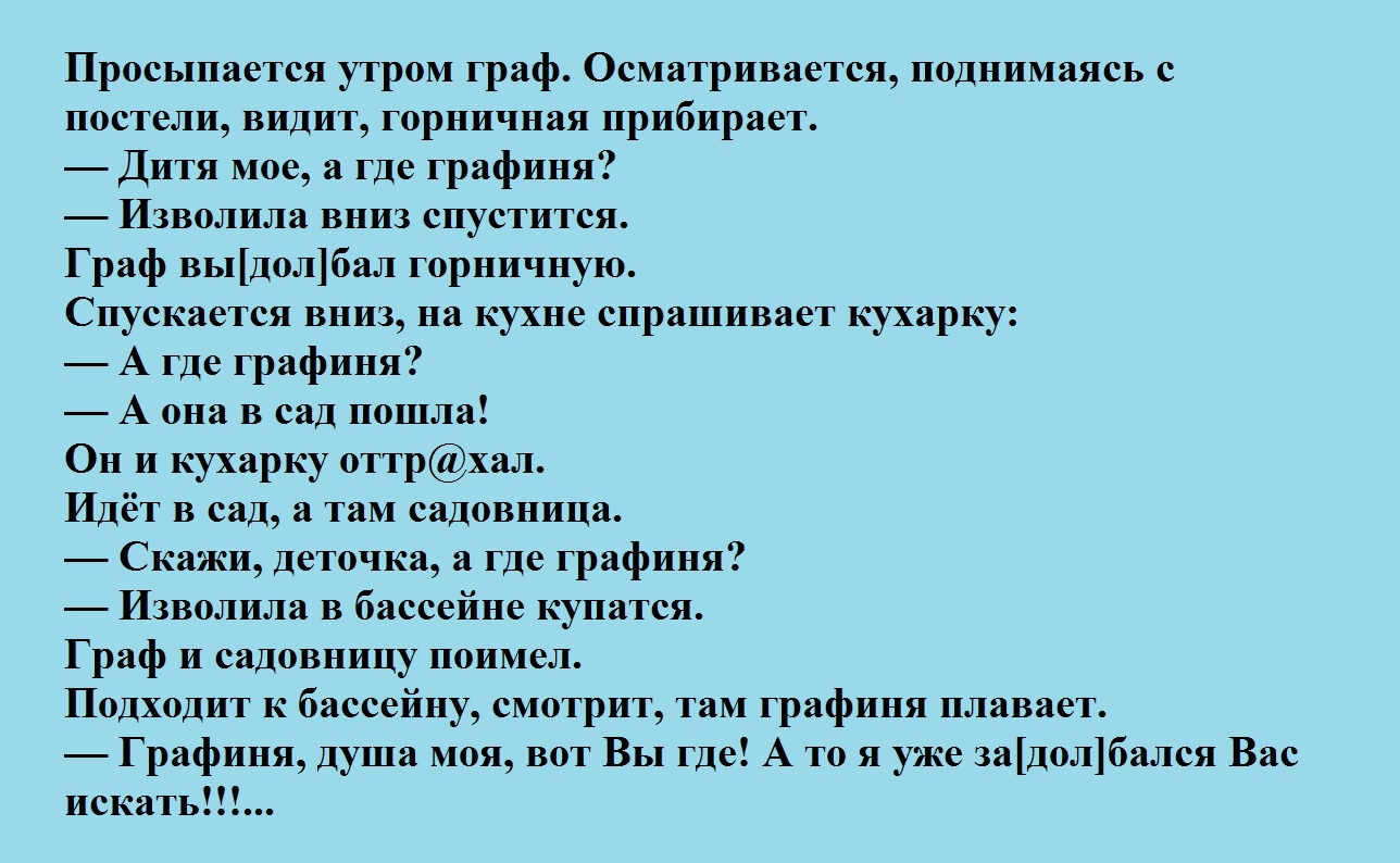 Есть такие анекдоты, которые явно не стоит зачитывать в присутствии детей и людей старшего поколения. Ведь они такие дерзкие, что аж неприличные. И происходит там такое, что будет понятно и смешно исключительно взрослым людям с широкими жизненными взглядами. Но такие анекдоты как раз-таки и являются самыми смешными. А потому, мы просто не можем оставаться в стороне, когда находим подобный юмор. Нам сразу хочется делиться им со всеми, кому интересен юмор!