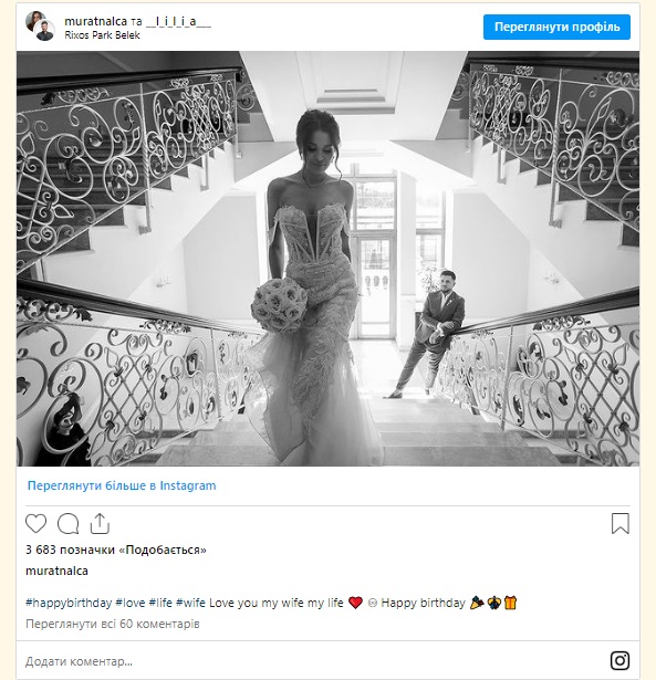 2 июня новой жене турецко-украинского бизнесмена Мурата Налчаджиоглу Лилии Реус исполнилось 27 лет. Свою возлюбленную он поздравил постом у себя в Инстаграм.
