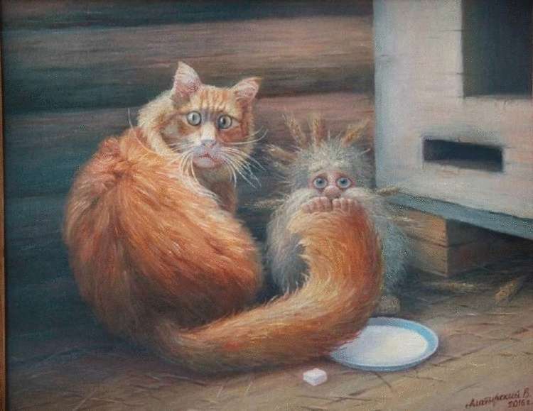 Друзья наши меньшие видят домовят. Они на них смотрят и иногда мурлыкают от того, что те их поглаживают.