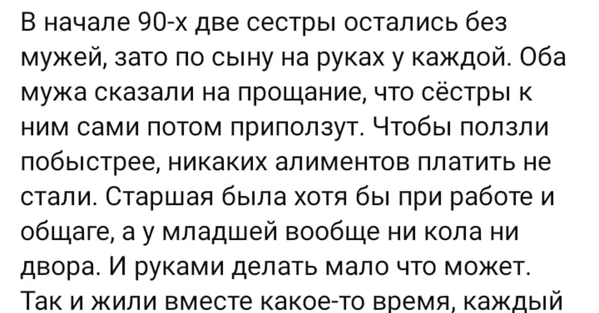 Оба мужа сказали на прощанье, что сестры к ним сами потом приползут. Чтобы ползли побыстрее, никаких алиментов платить не стали.