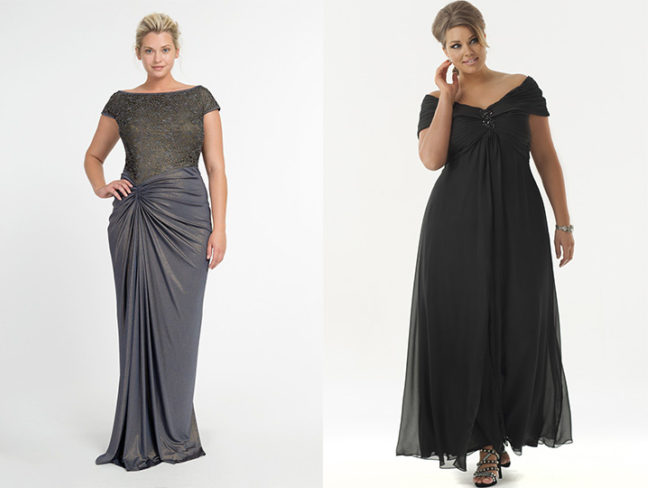 Дамам с животиком необходимо выбирать темные оттенки нарядов, придающие точеность и стройность женским образам. Платья, скрывающие недостатки фигуры, выполняются чаще всего в цветах: электрик, изумруд, бордо, пурпур, шоколад, фото подборка тому подтверждение.