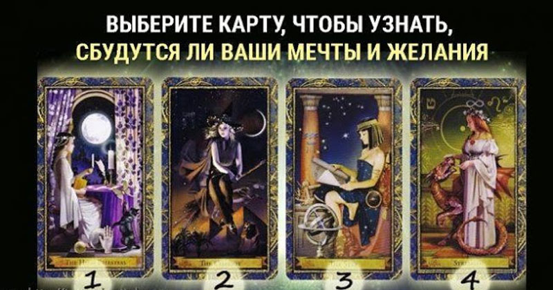Гадание – один из самых простых и действенных способов узнать, исполнится ли ваше желание и когда. Сегодня у вас есть такая возможность – спросить у Вселенной о своем желании. Просто задайте вопрос, сосредоточьтесь на нем, а затем – выберите одну из четырех карт. Узнайте ее значение в этом толковании.