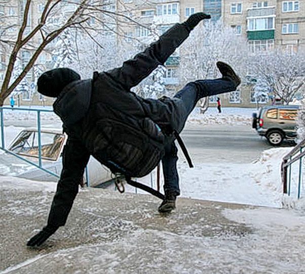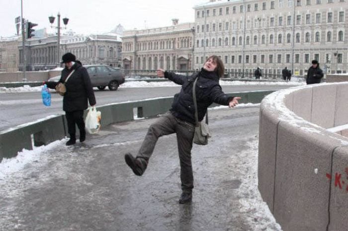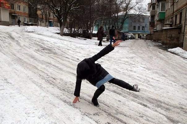 На улице зима, но не всегда она радует нас волшебной снежной погодой. Не редко вместо снега у нас под ногами гололед. В такую погоду вообще лучше не выходить из дома, но ведь работу никто не отменял. И вот тут народ поневоле начинает выполнять каскадерские трюки, чтобы сохранить баланс. Впрочем, это не всегда удается, и тут главная задача – правильно и мягко упасть. Об этом наша сегодняшняя фото-подборка. Самые эпичные падения, которые удалось поймать на камеру. Будьте осторожнее на льду!