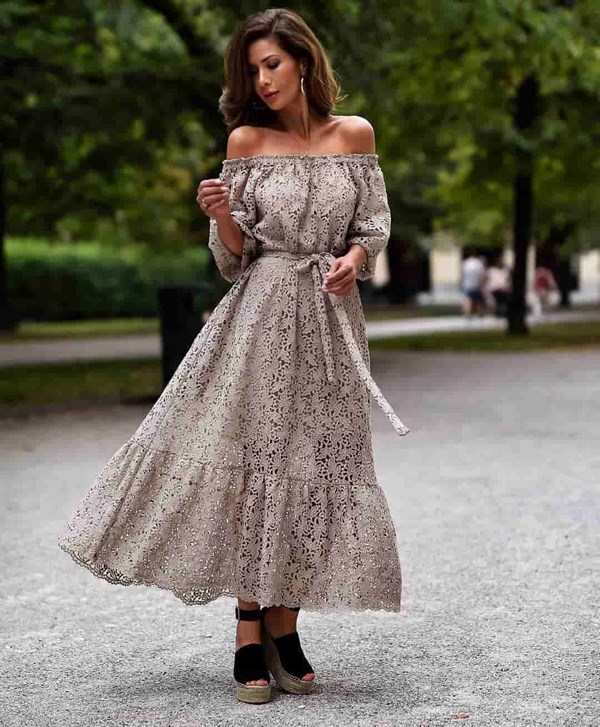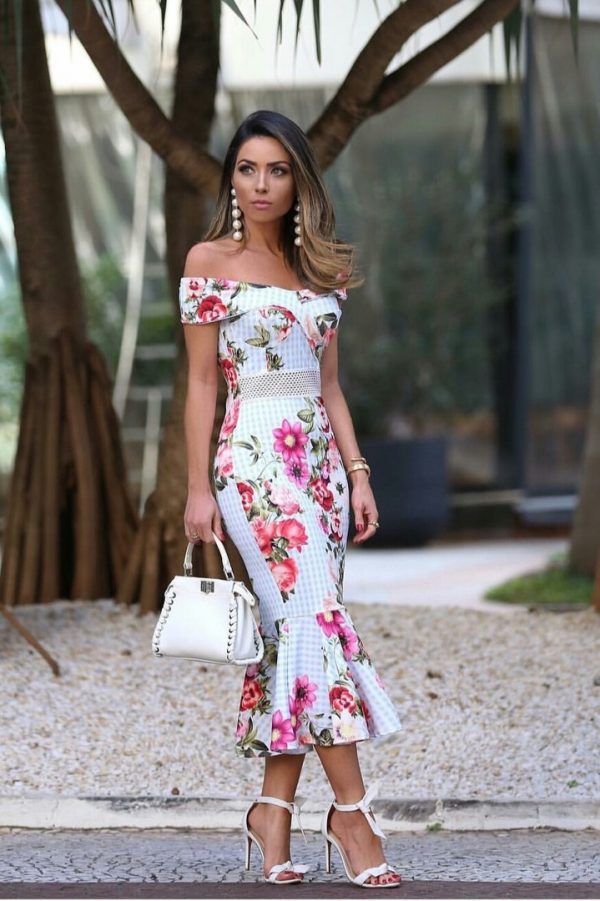 Обратите внимание – в весенней моде-2019 оголенные плечи, легкие ткани и длина ниже колена.