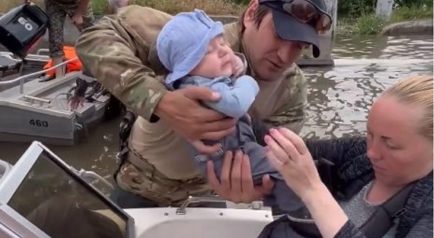 На кадрах можно увидеть, как происходит эвакуация пожилых людей, младенцев, животных, больных людей с их затопленных домов. Вода не останавливается и до сих пор прибывает.