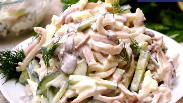 Очень-очень вкусный салат с кальмарами. Рецепт просят все, кто пробует!