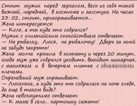 И совершенно не важно как Вы представляете себе идеальный отдых на выходных — в шумной компании на природе, в гламурном заведении при полном параде, с семьей дома или в полном одиночестве прогуливаясь по улицам города или на диванчике с сериалом — главное, чтоб Вы провели время именно так, как того просит Ваша душа. А наша порция юмора обязательно задаст Вам самое позитивное настроение на этот уикенд.