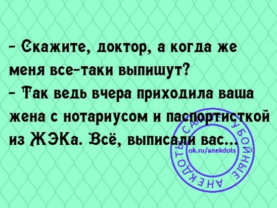 «Смех продлевает жизнь». «Кто смеется, тот все прощает». «Смех защищает от страха». «Смейтесь — это полезно для тела и духа». «Смех — это солнце, которое прогоняет зиму с человеческого сердца»…Это все цитаты великих людей, которые знали, насколько важную роль в нашей жизни занимает смех. И мы с ними полностью согласны! Поэтому так часто и много публикуем анекдоты. Просто это наилучший способ искренне улыбнуться, а, может, и посмеяться.