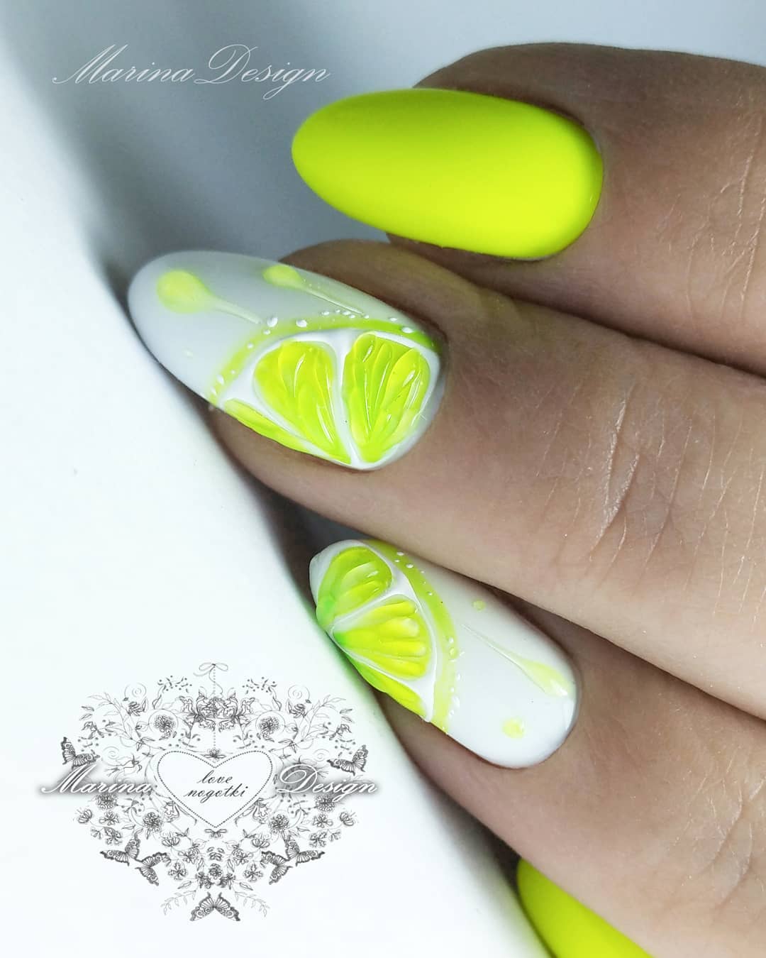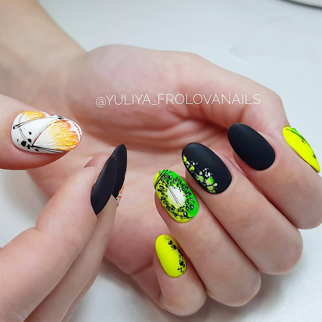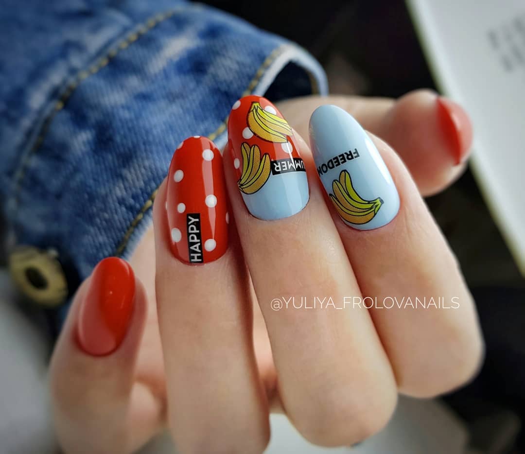 Самое жаркое и яркое время года по-настоящему наступило, и хочется самым быть столь же красочно-прекрасными, как и лето! Предлагаем Вам подборочку сочных, солнечных и вкусных идей дизайна ноготков, которые привнесут в Ваш образ настроение лета.