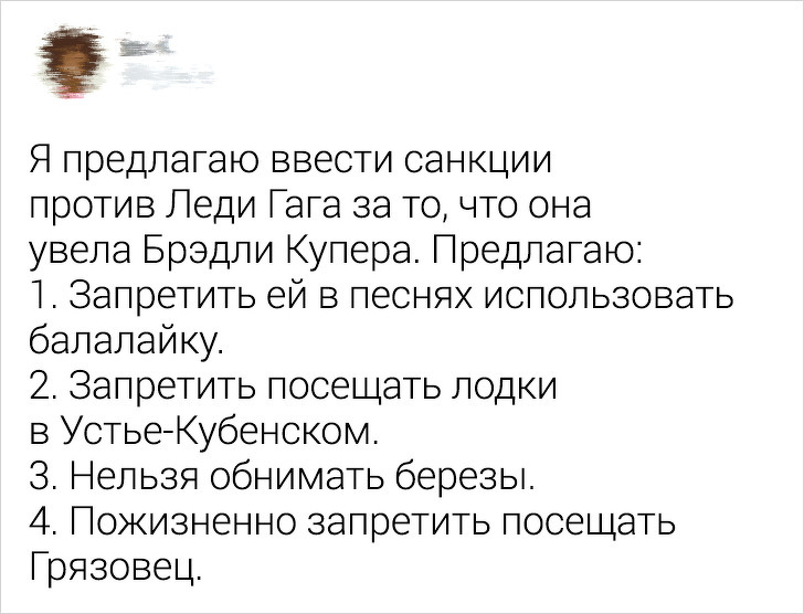 Недавно топ-модель российского происхождения Ирина Шейк и голливудский актер Брэдли Купер объявили о своем расставании. Практически сразу в сети появились слухи о том, что виновницей разрыва стала Леди Гага, с которой Купер снялся в оскароносном фильме «Звезда родилась». А несколько дней назад в инстаграме певицы начался настоящий флешмоб пользователей из России, которые «вступились» за соотечественницу. Однако, как это часто бывает, тема вышла далеко за пределы предполагаемого романа знаменитостей: в аккаунте Леди Гага россияне стали делиться рецептами блюд, продавать гараж и даже рекламировать нижнее белье.