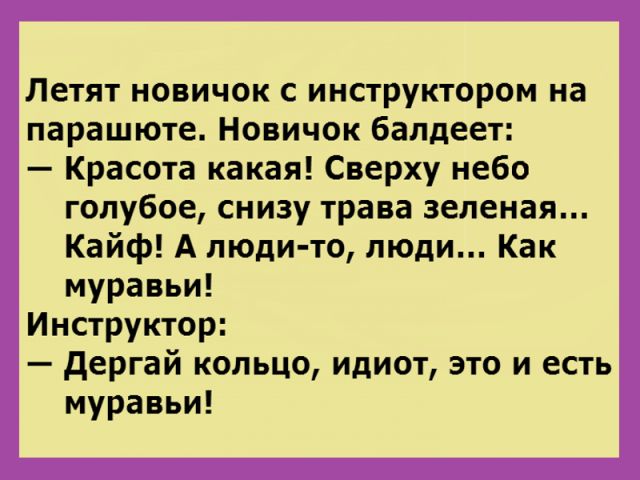 Прочтите эти веселые анекдоты-открытки, и вы сможете почерпнуть немного юмора на день грядущий. Возможно, какие-то из открыток вызовут у вас улыбку или даже смех. Мы будем этому очень рады. Хорошего дня!