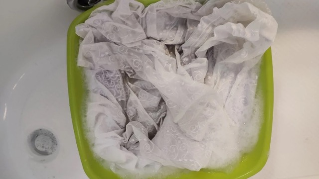 2. После этого я тщательно прополоскал шторы, чтобы избежать залипания пены в стиральной машине.