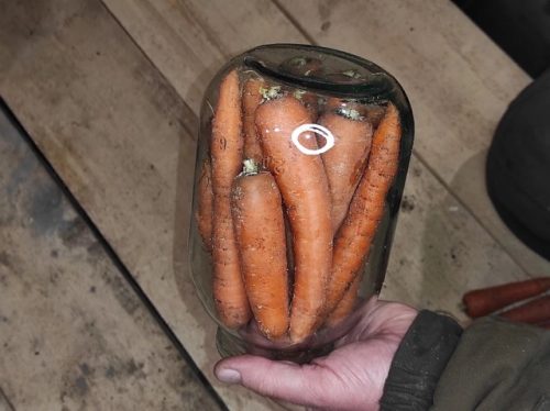 Банка оберегает морковку не только от увядания, но и от мышей.