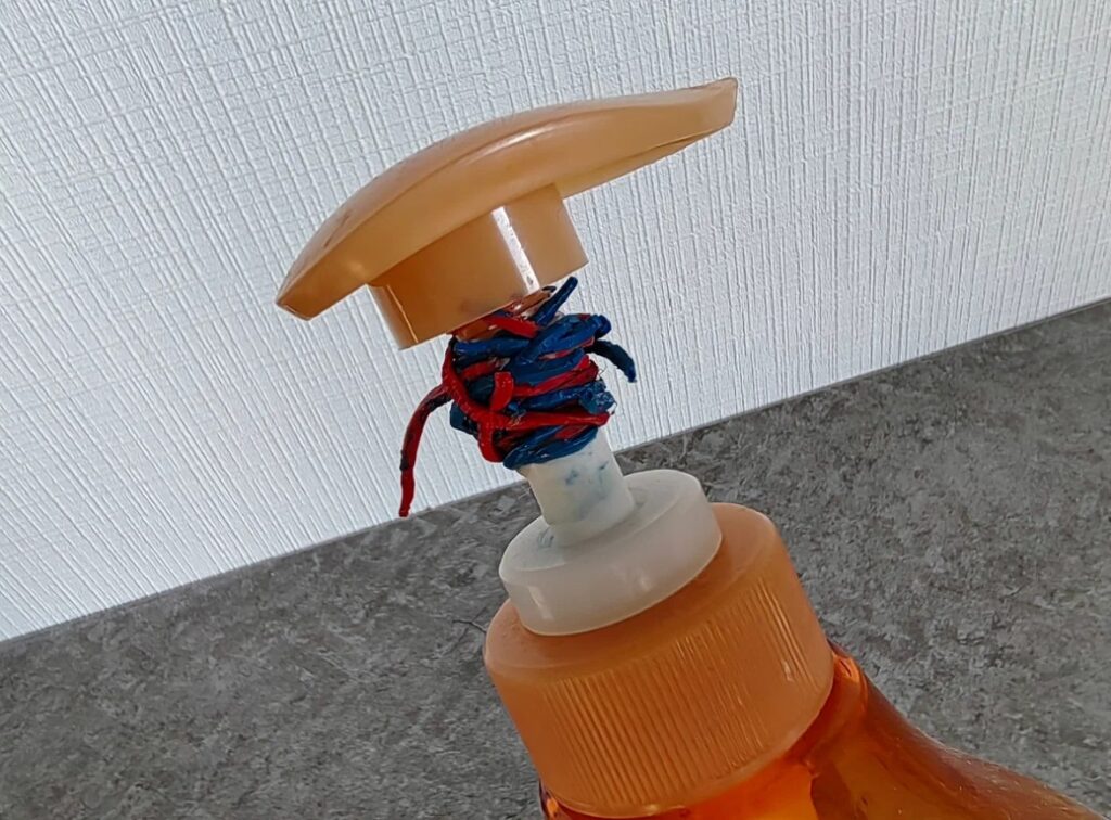Для контроля расхода моющего средства я обнаружила простой метод: обмотать резинкой дозирующий стержень бутылки, что позволяет избежать его излишнего использования моими домочадцами.