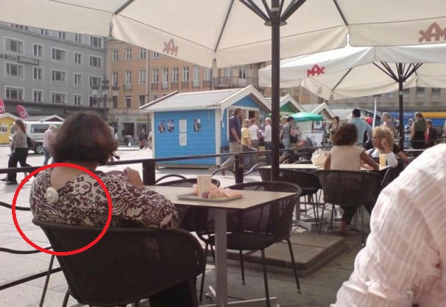 Этот снимок сделал обычный турист на одной из площадей Польши. Его зоркий взгляд сразу же заметил что-то неладное за соседнем столиком.