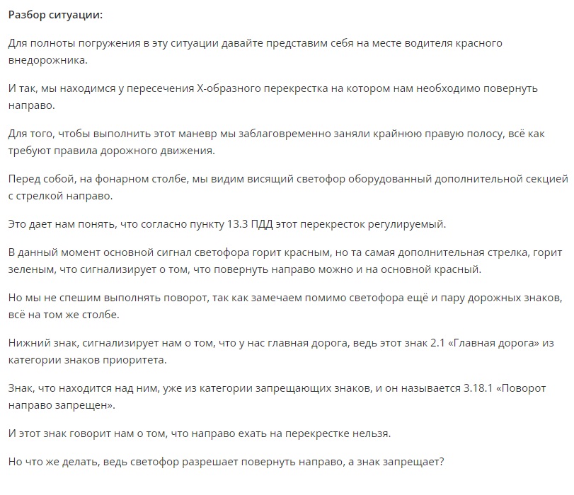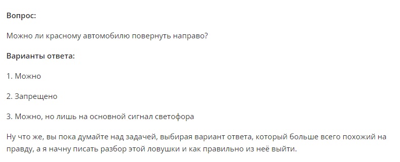 Итак, устройтесь поудобнее, сосредоточьтесь и взгляните на эту картинку. Оцените ситуацию на дороге и ответьте на вопрос — разрешено ли красному авто поворот направо, учитывая ситуацию?