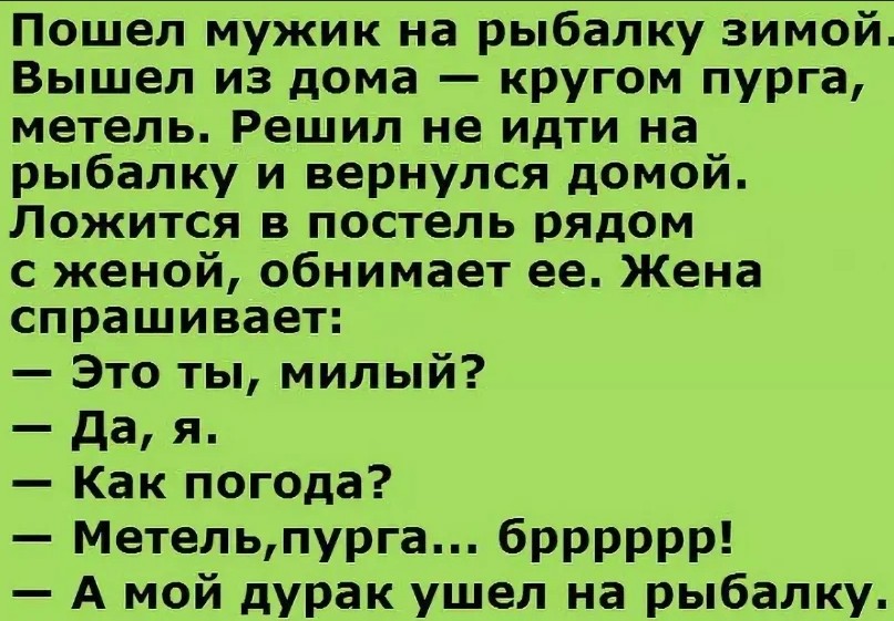 Еще один зимний рабочий день подходит к своему завершению, и сейчас самое время отдохнуть и отогреться. Вкусный ужин, горячий напиток, интересный фильм — все это согреет Вашу душу в холода. а наша порция развеселых шуточек обо всем на свете подарит солнечное настроение вопреки морозу за окном. Так что усаживайтесь поудобней и готовьтесь посмеяться от души.