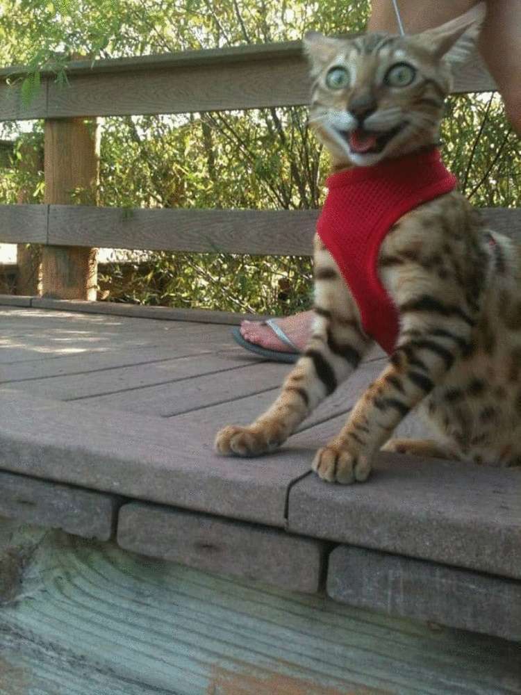 Показывать домашнему коту улицу достаточно рискованно. Реакции может быть две. Первая: хозяин, это ошибка — забери меня срочно обратно и больше никогда не выводи! Вторая: так вот как другие котяры живут, бросаю оседлую жизнь и пускаюсь во все тяжкие! На фотографиях ниже представлен весь спектр кошачьих эмоций — и радость, и испуг, и удивление, и интерес к окружающему миру.