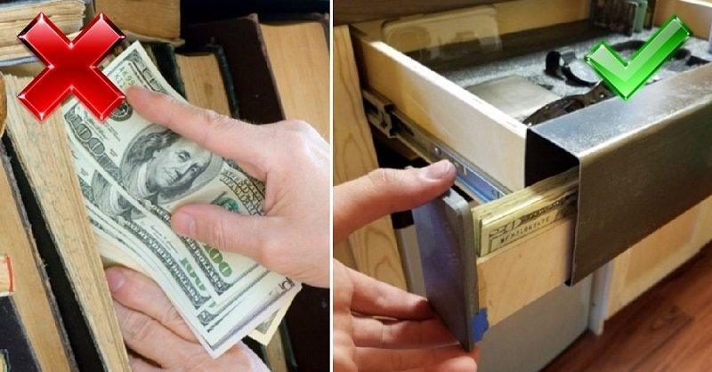 - Полости внутри любых стеллажей, стенок, подоконников — хорошие места, если вы эти полости придумали сами. Воры не смогут проверить каждую грань каждого предмета мебели, тем более если не знать, где искать.