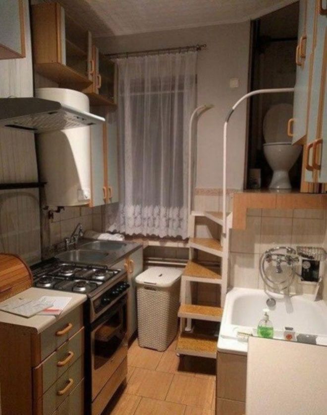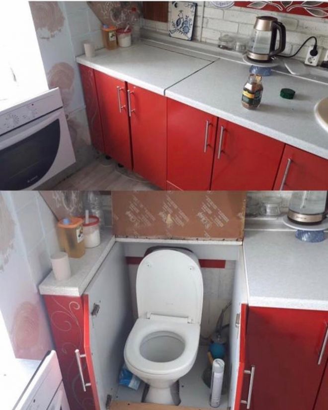 Шкафчики в форме гроба, унитаз в центре, душевая кабинка или приспособления, которыми невозможно пользоваться – это всё о том, что мы увидели на кухнях, которыми поделились пользователи Сети. И знаете, глядя на эти фото, мы стали понимать, почему люди все меньше стоят у плиты, и всё чаще стоят в очереди за шаурмой!