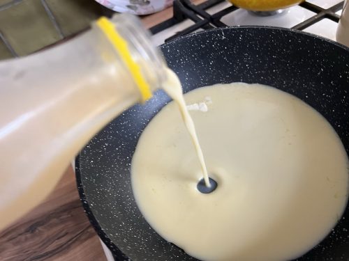 Теперь решила попробовать жидкое яйцо. Начала с приготовления яичницы, выливая содержимое бутылки на сковороду с маслом.