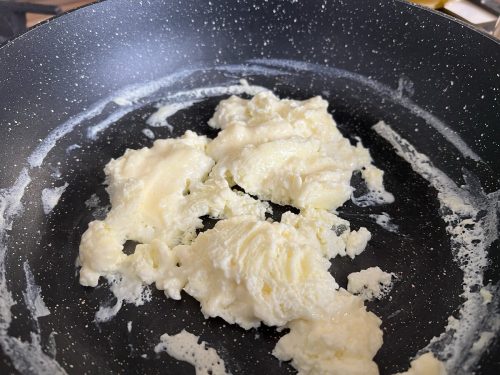 Яичница получилась похожей на омлет, но на вкус была как яичница.