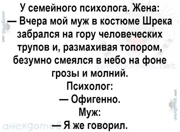 Даже когда за окном холод, ветер и совсем противненько, мысль о том, что и сегодня, и завтра выходные, без сомнений радует! Не всегда обязательно проводить свободное время со всякими активностями — порой, просто посидеть дома, посмотреть тв или сериалы, насладиться покоем и уютом — тоже отличный вариант. А наша порция легкого, милого и безобидного юмора точно подарит Вам заряд позитива и поможет наслаждаться этим вечером!