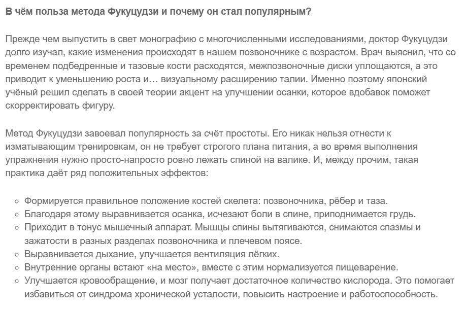 Всё гениальное просто, не так ли? Вот и в спорте так же. Так, вместо изнуряющих длительных тренировок достаточно просто немного полежить — определённым образом, конечно. Это японский метод, который избавит от лишнего живота с помощью одного лишь валика. Или свернутого полотенца. Метод этот разработал доктор Фукуцудзи, и потратил порядка 10 лет, чтобы доказать его эффективность.