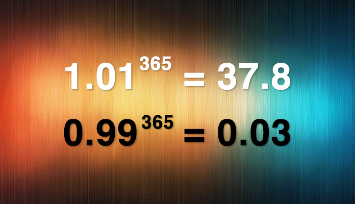 Если принять усилия за единицу и возвести в степень 365 – количество дней одного года, то результат получается именно таким. Делайте чуть-чуть меньше, чем можете – и результат практически нулевой. Делайте немного больше, чем делаете обычно – и результат увеличивается многократно. С математикой не поспоришь. С жизнью тоже.