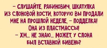 Одесский юмор – это настоящий народный шедевр. Каждая фраза поражает сознание своей искрометностью и остроумием. Не удивительно, что из разговоров с евреями не редко появляются самые смешные анекдоты. И правда – чувству юмора этого народа можно только позавидовать!