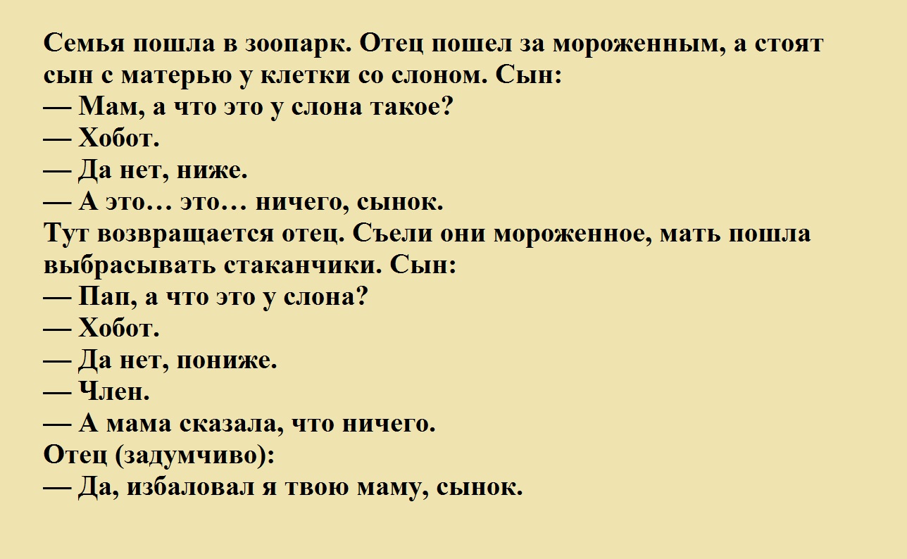 А потому, прямо сейчас – не откладывая процесс в долгий ящик, предлагаем подкрепить своё настроение несколькими удачными шутками. На этот раз здесь вы найдёте ассорти из семейного юмора, жизненных ситуаций и пикантных историй.