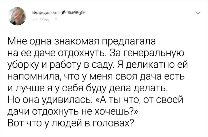 Занимаюсь маникюром в качестве подработки. Почти год делала ногти одной родственнице, деньги не брала: родня же… Некоторое время назад поменяла основную работу, теперь тружусь 6 дней в неделю плюс половину воскресенья. В свободное время хочется выспаться и уделить внимание себе. Родственнице перестала делать маникюр: лучше отдохну лишний раз. Теперь ее мать возмущается, мол, как так, я дома сижу, время есть, могла бы и позвать ее дочу. © Мария Акимова / Facebook