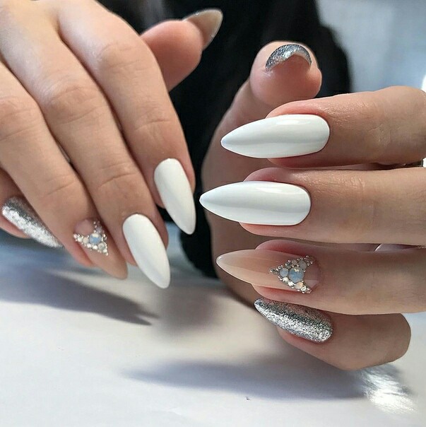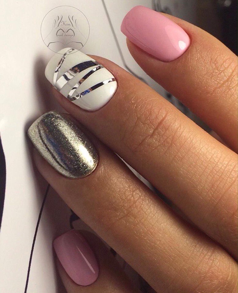 Предлагаем Вам огромную подборку изысканного дизайна ноготков с элементами белого и метала — он точно придется по душе хозяйке года Белой Металлической Крыске.