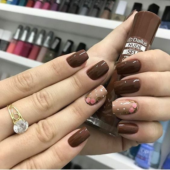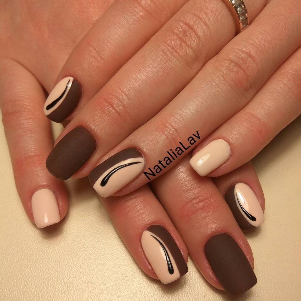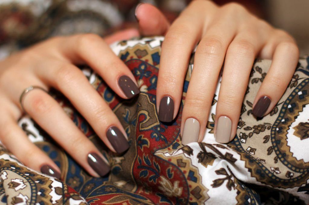 Оттенки кофе, ириса и шоколада в маникюре добавляют женственности, нежности и тепла любому образу. К тому же, эти тона универсальны, и прекрасно подойдут под любой стиль одежды и уместны на все случаи жизни.