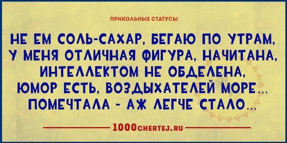 В завершении среды не забудьте хорошенько насмеяться. Ведь вечерний позитив предшествует хорошему и продуктивному новому дню.