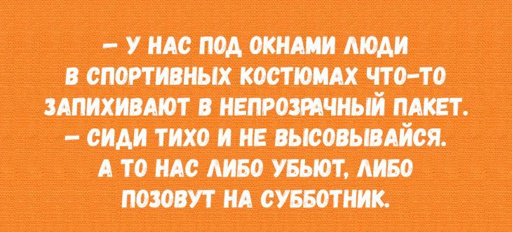 В этот прекрасный майский вечер мы желаем всем Вам приятных эмоций, оптимизма, душевной компании и чудесного настроения. Судя по всему, карантин скоро закончится, и все мы снова окажемся в обычном круговороте жизни, поэтому сейчас нужно наслаждаться каждым спокойным вечерком. А для того, чтоб улыбка не покидала Вас вне зависимости от обстоятельств, заряжайтесь позитивом от очередной подборочки юмора, который мы собрали для Вас!