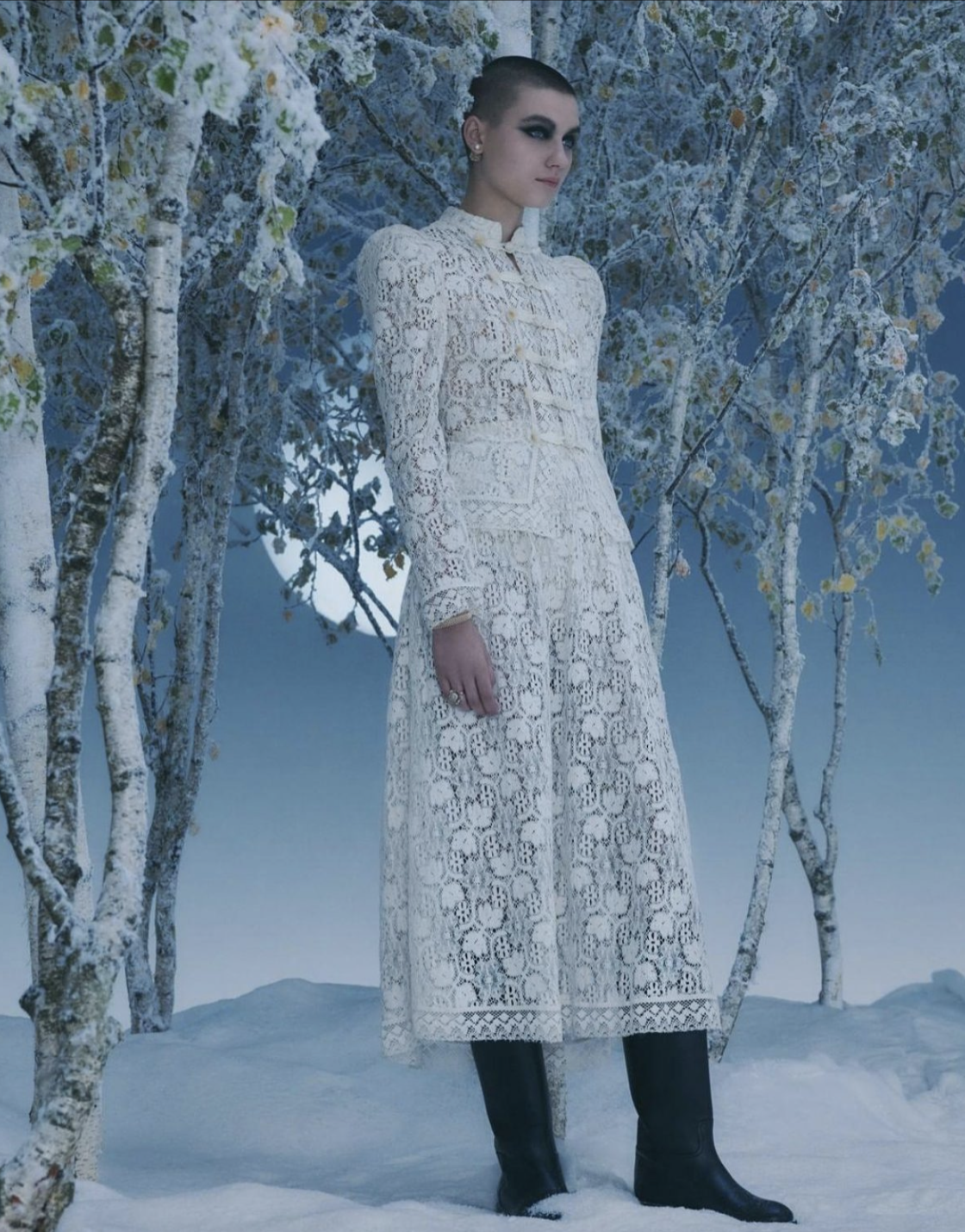 «В этом ледяном царстве собраны неземные вещи, созданные Марией Грацией Кьюри, которые воплощают в себе чудеса праздничного сезона. Из снега появляется множество безупречных кружевных платьев и аксессуаров из круизной коллекции. Следите за следующими путешествиями по мере продолжения тура», — сказано в публикации модного дома.