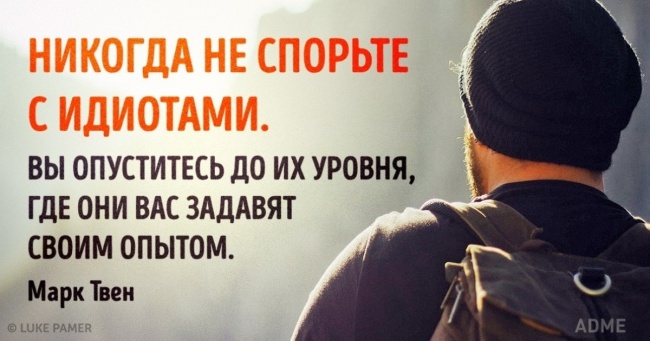 - Никогда не спорьте с идиотами. Вы опуститесь до их уровня, где они вас задавят своим опытом.